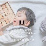 KOUGIは、家族の絆を形にする仏壇づくりの心で、人生のアニバーサリーを祝う商品を作っています。産まれてきた赤ちゃんのお名前で作る積み木をぜひお祝いのサプライズにしてください。