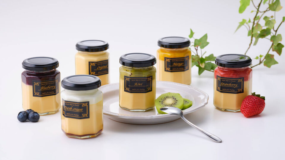 フレーバーは、素材の上質さが際立つ「オリジナル」、ほろ苦カラメルが贅沢な「生クリーム」、果実感たっぷりの「ストロベリー」「キウイ」「マンゴー」「ブルーベリー」の全6種。フルーツソースはごろっとした食感が特徴です。