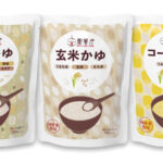 栄養豊富な五穀が香ばしい「五穀かゆ」、しっかりとした歯ごたえの「玄米かゆ」、コーンの甘い風味が特徴の「コーンかゆ」の3種類から、お好みでお選びください。