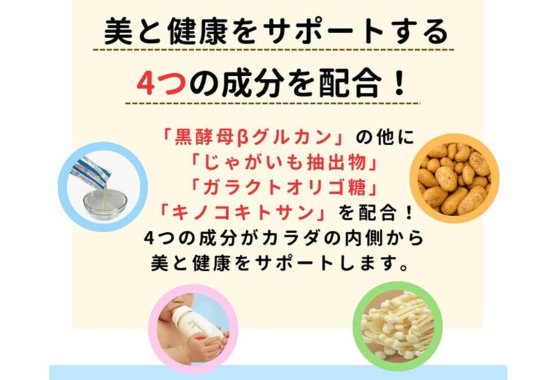 じゃがいも抽出物・ガラクトオリゴ糖・キノコキトサンなども配合した、優しい甘さのβグルカンサプリメントです