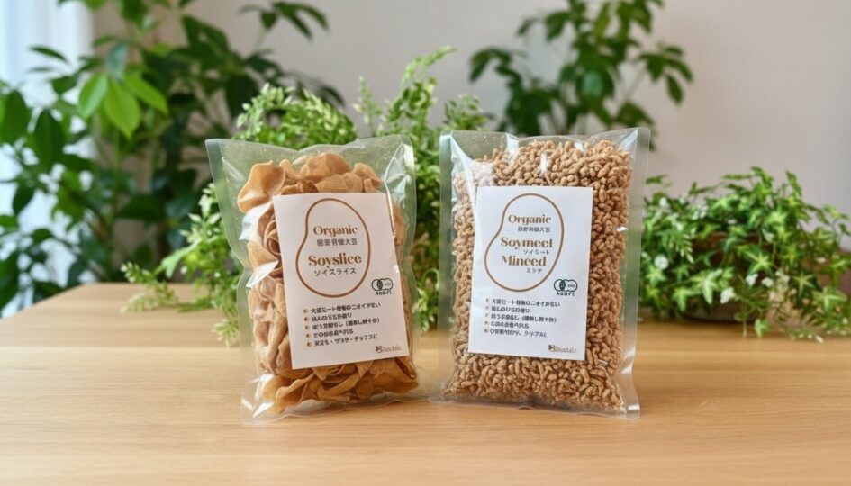 さらに、Bihadaizは「代替肉」ではなく、日本の大豆文化を進化させた「豆腐の進化系」食品として、湯戻し不要でそのまま調理できる有機JAS大豆ミートを開発しました。